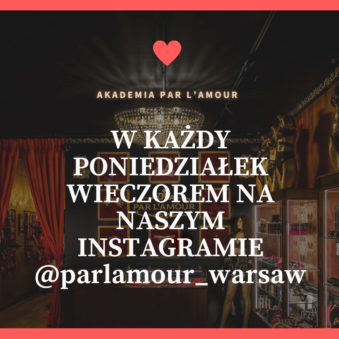 Wiedza z zakresu edukacji seksualnej może poprawić jakość Twojego życia erotycznego. Akademia Par L’amour, to nasz regularny cykl, który możesz śledzić co poniedziałek wieczorem na naszym Instagramie @parlamour_warsaw. Rozwinięcie gorących tematów znajdziesz na blogu par l’amour, gdzie publikujemy treści blokowane przez Instagram a także dużo merytorycznej wiedzy, konsultowanej z najlepszymi lekarzami.