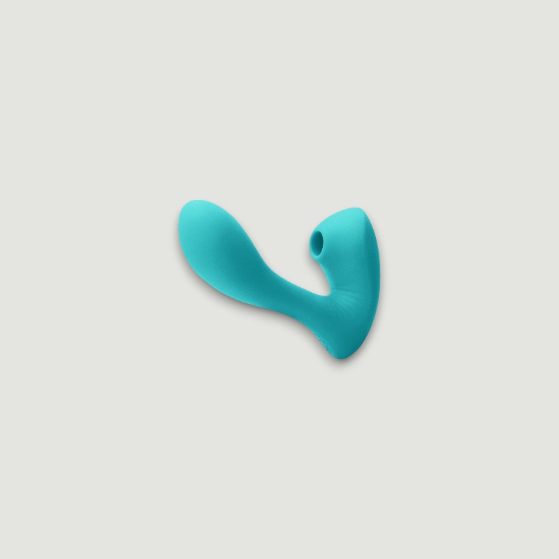 Spragniona intensywnych doznań? Ten stylowy gadżet w turkusowym odcieniu łączy w sobie mocny masaż punktu G z przyjemnym, pulsującym ssaniem łechtaczki. Jego zakrzywiony kształt z łatwością trafia w odpowiednie miejsca, a miękki silikon gwarantuje komfort podczas każdej zabawy.