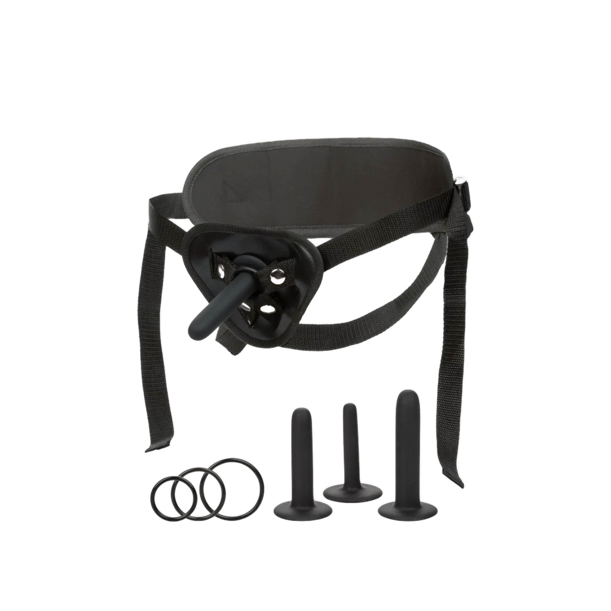 Komplet pas + zestaw 3 wymiennych dild wraz z ringami.