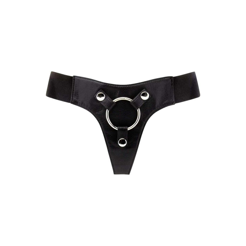 Elastyczny pas z metalowym ringiem. Uprząż przeznaczona jest do dild o średnicy do 50 mm. Paski są elastyczne i zapewniają, że dołączone dildo pozostanie na swoim miejscu. Materiał po wewnętrznej stronie jest bardzo miękki oraz wygodny w noszeniu.