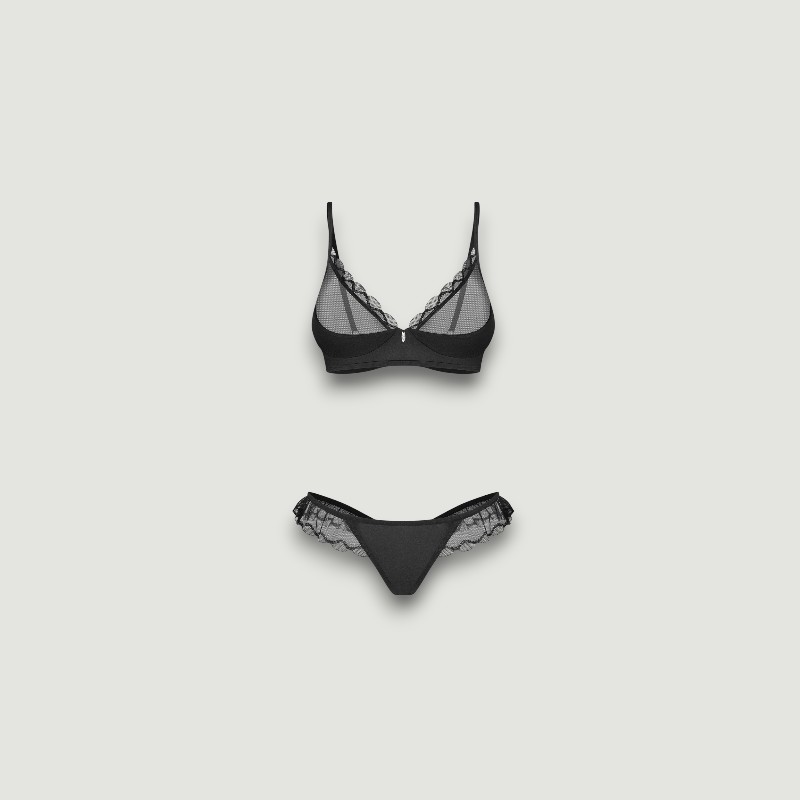 Odkryj magię zmysłowego wieczoru z kompletem Stelisa – propozycją dla kobiet, które cenią subtelną elegancję i odrobinę pikantności. Zestaw składa się z transparentnego biustonosza typu soft cup oraz delikatnych stringów, które podkreślają kobiece kształty i dodają pewności siebie. Biustonosz z miseczkami na fiszbinach oraz częściowym usztywnieniem zapewnia subtelne modelowanie biustu, eksponując jego naturalną linię. Trójkątny dekolt i falbankowe detale przyciągają uwagę, a transparentna siateczka w połączeniu z gładkim materiałem tworzy efektowną całość. Regulowane ramiączka oraz kilkustopniowe zapięcie na haftki pozwalają na idealne dopasowanie. Idealny wybór dla kobiet, które chcą poczuć się wyjątkowo w każdej chwili.