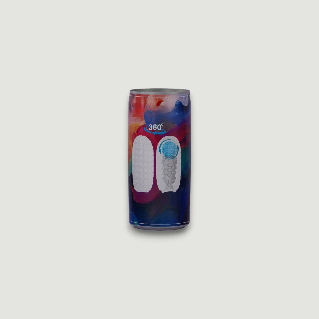 Wewnętrzne wypustki o różnej średnicy rozmieszczone są tak, by tworzyć silne punkty nacisku. Do tego dochodzi ruchoma kulka, która zmienia pozycję w trakcie użycia, dodając efekt losowego nacisku i zmiennego rytmu. Całość zamknięta jest w opakowaniu przypominającym klasyczną puszkę, co czyni gadżet wyjątkowo dyskretnym i gotowym do działania w każdej chwili.