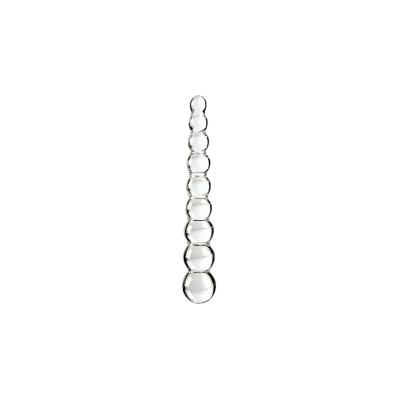 Minimalizm formy spotyka się tu z potężnym ładunkiem doznań. To ręcznie wykonane dildo ze szkła borokrzemowego zachwyca przezroczystą powierzchnią i pofałdowaną strukturą z kulistymi wypustkami, które intensyfikują stymulację przy każdym ruchu. Dzięki długości całkowitej 21,5 cm i zmiennej średnicy od 2,5 do 3,8 cm, zapewnia falujące doznania zarówno podczas penetracji waginalnej, jak i analnej.