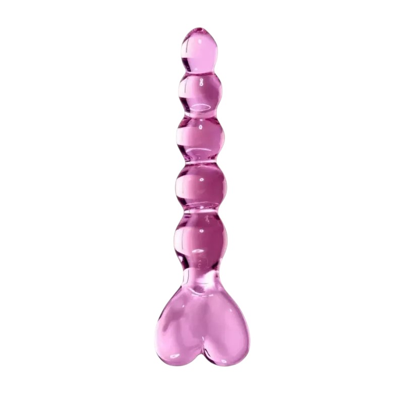 Wykonany z gładkiego, różowego szkła, jest całkowicie bezpieczny dla ciała, hipoalergiczny i bardzo łatwy w czyszczeniu. Długość całkowita 20,3 cm i użytkowa 15 cm w połączeniu z średnicą 3,5 cm sprawiają, że masażer doskonale leży w dłoni, a jego rączka w kształcie serca nie tylko przyciąga wzrok, ale też zapewnia pewny chwyt i precyzyjną kontrolę podczas użytkowania.