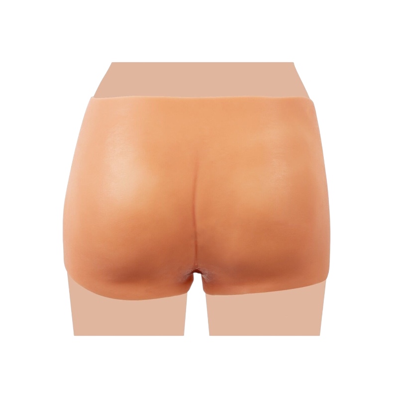 Majtki silikonowe z realistycznym sromem i waginą. Pępek, pośladki i elastyczny odbyt dopełniają realistycznego wyglądu. Pochwa posiada możliwość penetracji, jest przyjemnie elastyczna i wyposażona w stymulujące wypustki i rowki po wewnętrznej stronie. Wykonane z jedwabiście miękkiego płynnego silikonu, majtki nie tylko wyglądają prawie jak prawdziwa skóra, ale także są tak miękkie w dotyku.Elastyczne na całym obwodzie, doskonale przylegają do skóry i są bardzo wygodne w noszeniu.