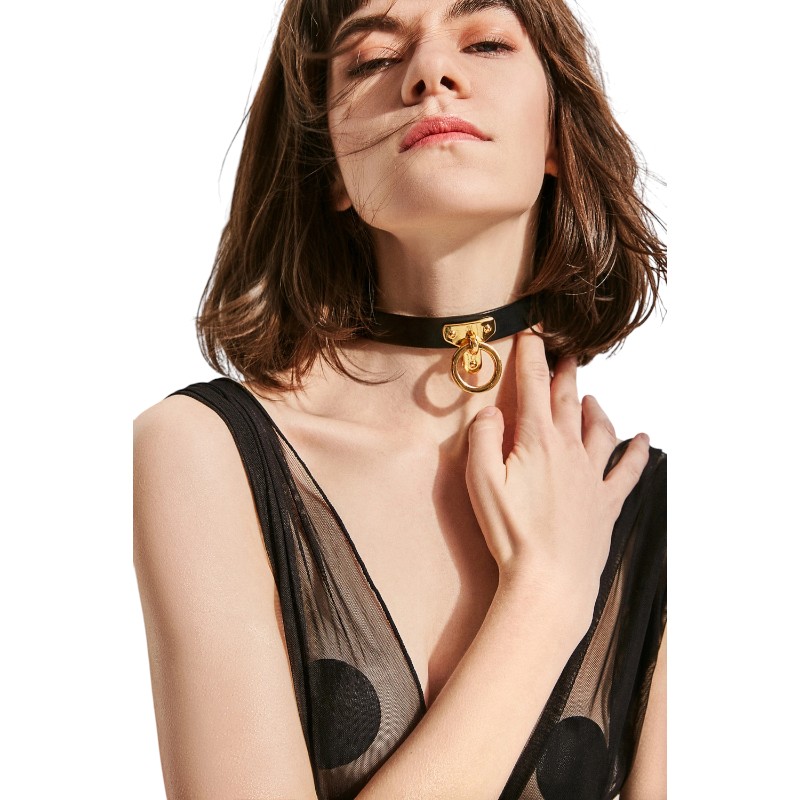 Czarna obróżka wykonana z włoskiej skóry od Givenchy, ozdobiona złotymi okuciami. Wspaniały dodatek również do codziennych stylizacji.