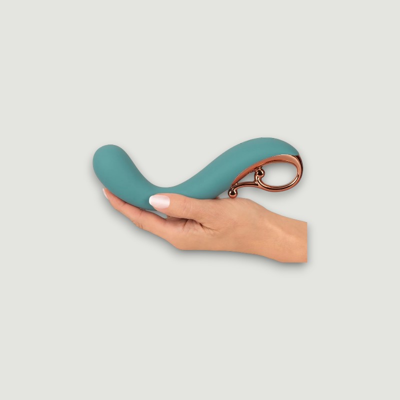 Ten stylowy wibrator został zaprojektowany z myślą o intensywnej, a zarazem komfortowej stymulacji punktu G. Wygięty, elastyczny korpus z miękkiego silikonu łatwo dopasowuje się do ciała, a dzięki praktycznemu uchwytowi w formie pierścienia, urządzenie dobrze leży w dłoni i umożliwia precyzyjne prowadzenie.