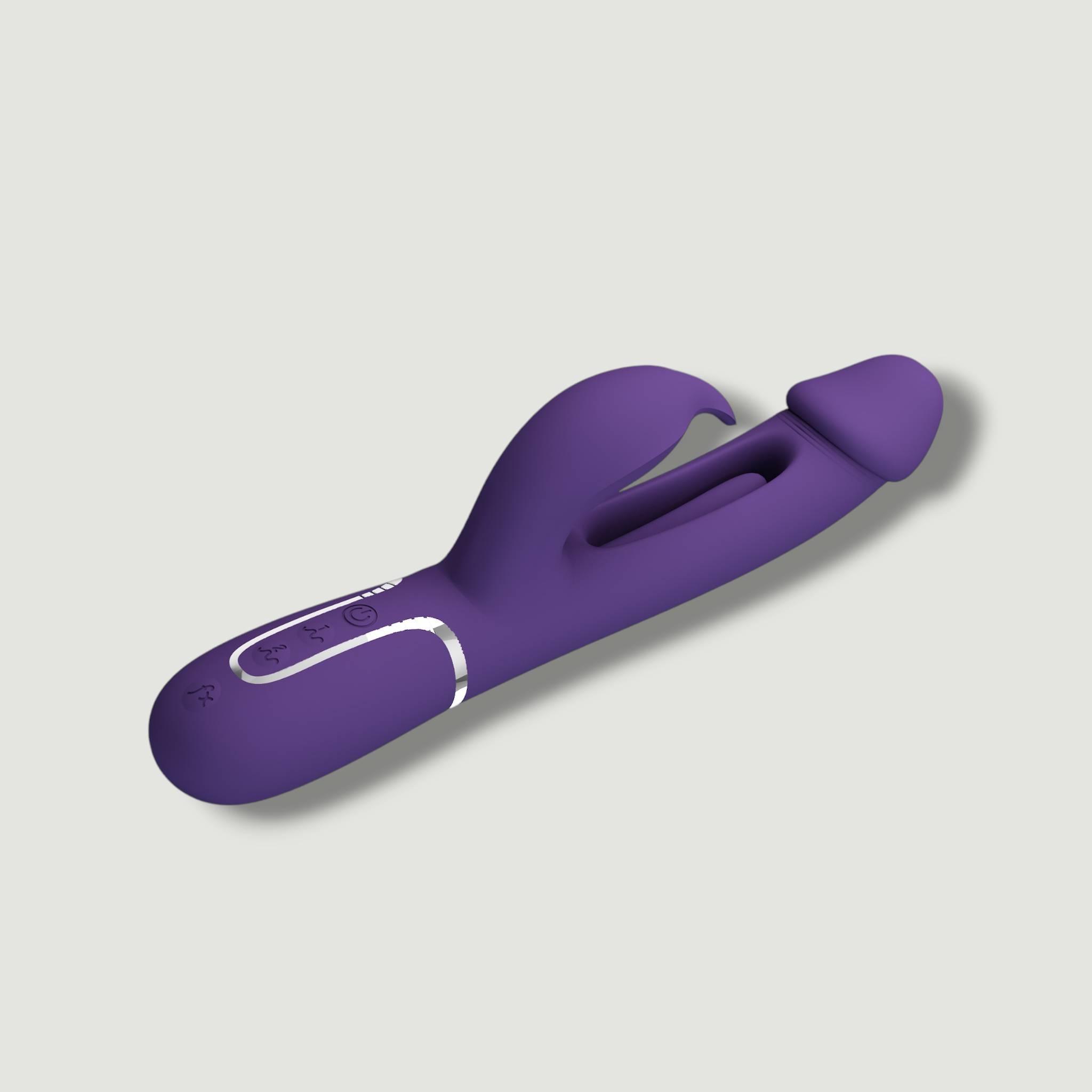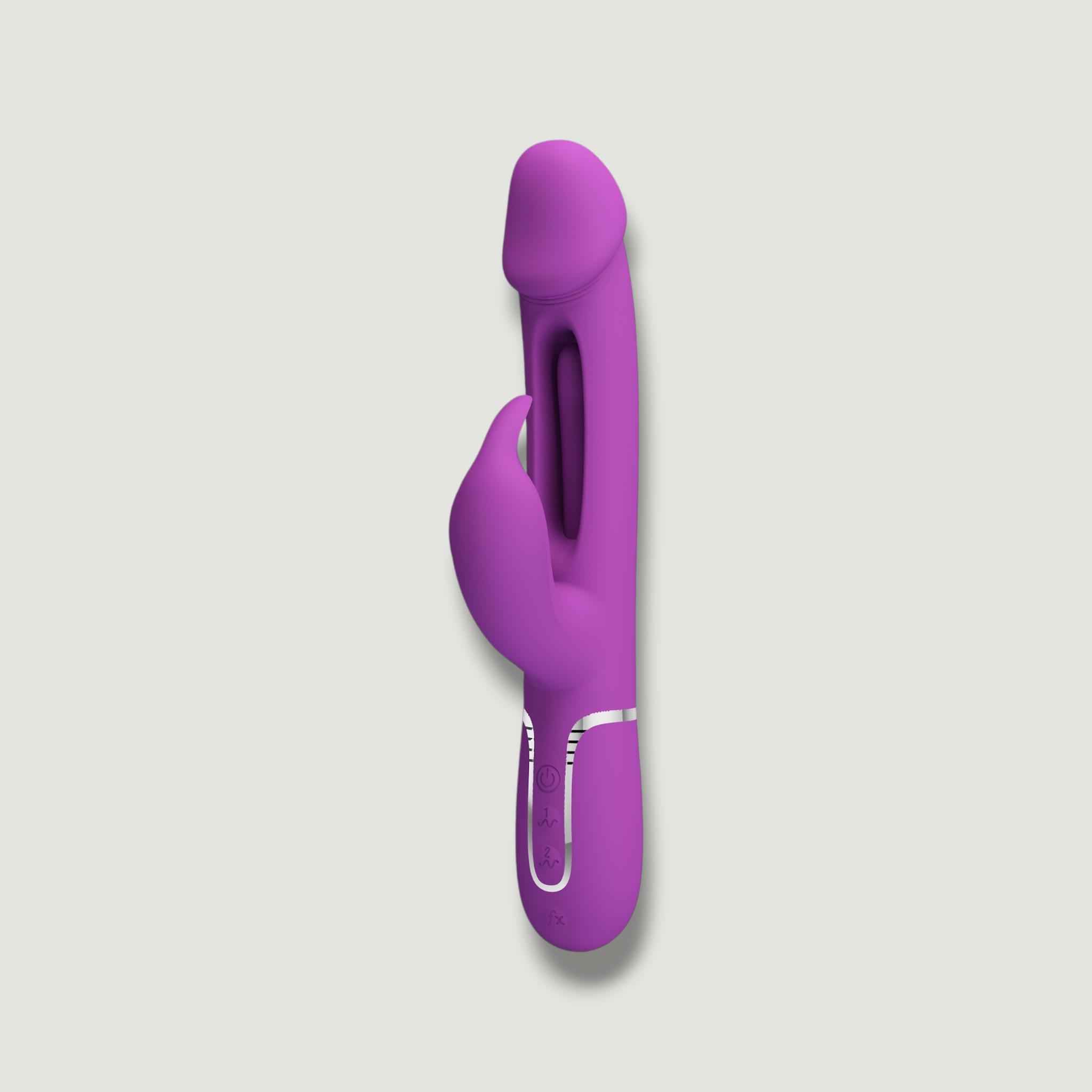 Mocny króliczek – zdobiony na ramieniu stymulującym łechtaczkę, delikatnie pieści i drażni wrażliwe miejsce w sposób, jakiego jeszcze nie doświadczyłaś.